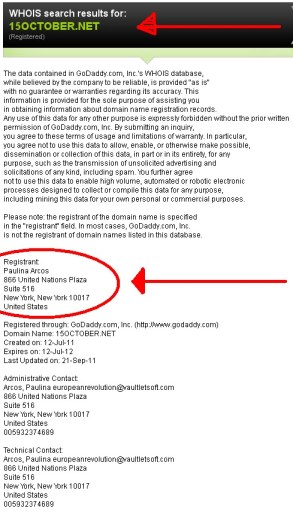 But what is even more interesting is what the person discovered about who owns the website. It is listed in the name of Paulina Arcos and note the address (below)