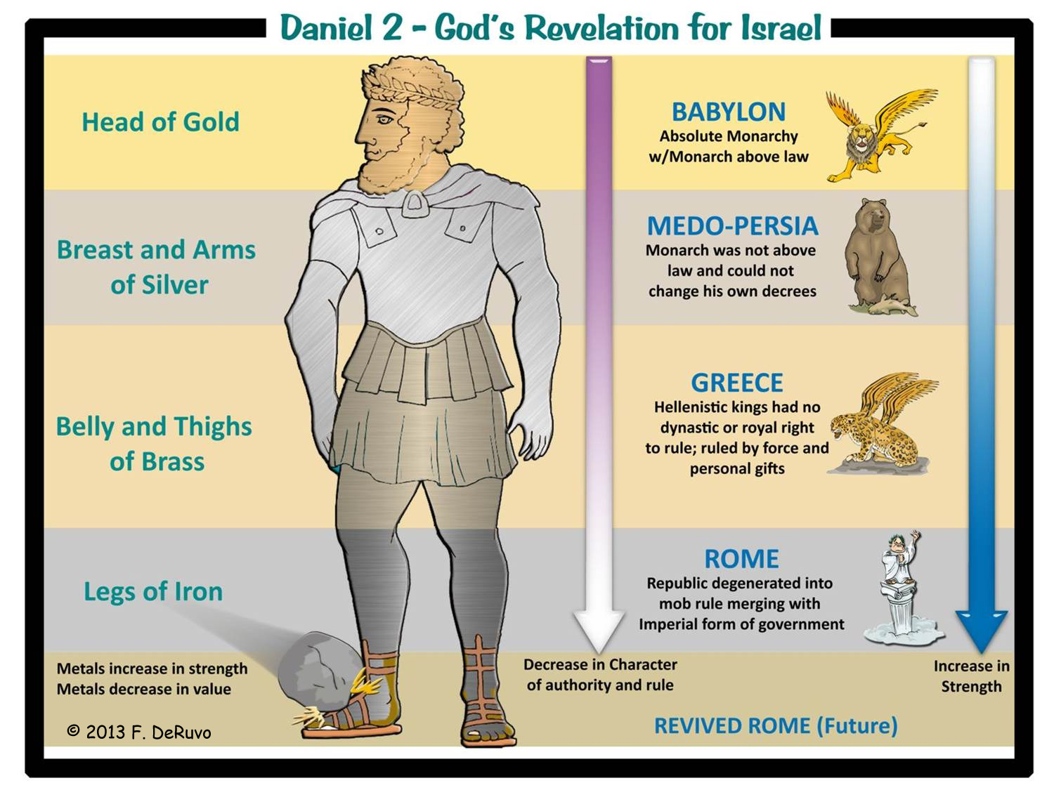 in the book of Daniel. There, we see future history laid out before Daniel, showing how the times of the Gentiles would begin with Nebuchadnezzar, then segue to the Medo-Persian Empire, followed by Grecian rule, then Roman, then a final empire that would be a combination of all of them, but have a great deal more in common with Roman rule. Yet, it would still be different and unique.