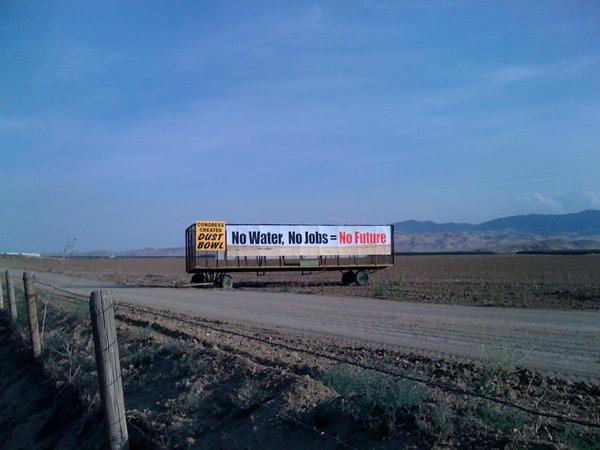 The article states that in one California region alone (the Central Valley, “a flat, fertile region stretching 450 miles (720 km) north-south from Redding to Bakersfield”), 500,000 acres of land will not grow crops due to tremendous water shortages.