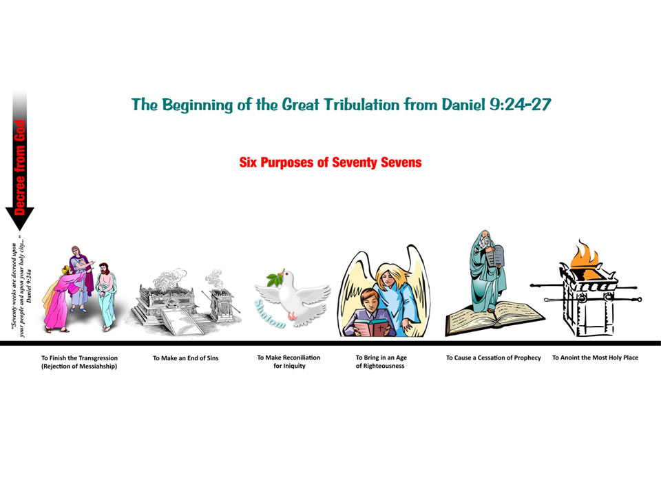 We need to understand then that this specific tribulation that Jesus refers to in Matthew 24 is a set period of time referenced in Daniel 9:27 (and various other places throughout Scripture) and there are specific reasons why God has decreed that this period of seven-years will occur as the Tribulation/Great Tribulation. Please note the image (click to enlarge) that supplies the reasons for this coming period of Tribulation, as noted in Daniel 9:24-27.