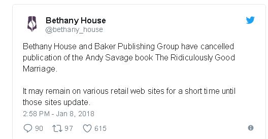 Lead pastor at Highpoint Church, Chris Conlee has been uninvited to speak at the Downline Summit because of the way he has handled the situation regarding Andy Savage. Beyond this, Bethany House has pulled from publication Savage’s book, The Ridiculously Good Marriage, from publication.