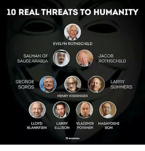 David Rothschild is simply one in that family, but the head of the Rothschilds clan is a man named Evelyn Rothschild. Under him is Jacob Rothschild and the Salman of Saudi Arabia. Notice George Soros is also listed there as is Henry Kissinger and others whose names may be unfamiliar to you. Most of these people know how to remain in the background. They are the ones who control most of the wealth throughout the earth and they are the people who help create wars and factions and seek to divide people along racial, religious, cultural, and political ideologies. As Q has noted before, they want us divided because as long as we remain divided we will not turn our energies and attention to them.