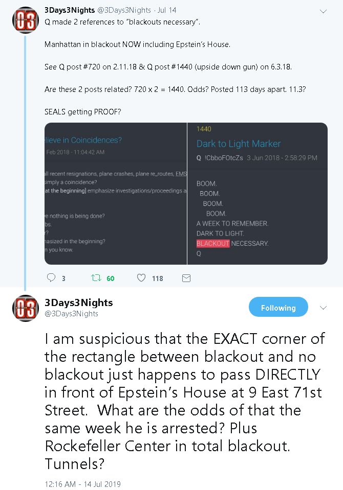 Recently, @3days3nights posted about the blackout that just occurred in New York City. Whether he’s right or not, I have to say I’m impressed with people who think like this and can put pieces of a puzzle together, if a puzzle exists. There is a likely a great deal happening behind the scenes and we may only see part of the effects of those events. Certainly, God is not impotent. He’s not doing nothing. He’s responding to the pleas and prayers of His authentic children throughout the world. It is not just America who may benefit, but other countries are also come out of darkness. To what final end, I’m not sure. Unfortunately, whatever good may result from all of this, eventually, this world will succumb to a one-world government, ultimately headed by the Antichrist.