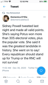 If Trump actually was on his way to getting 305 electoral votes as attorney Sydney Powell states, that also explains why things were shut down in several swing states at essentially the same time on the night of the election. There is so much fraud, I want people to go to prison for what they have done.