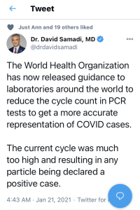 Gosh, who knew? Many of us knew it but the time was not right until Joe Biden became president. Now, things can start rolling back so that there will be fewer false positives from the PCR tests.