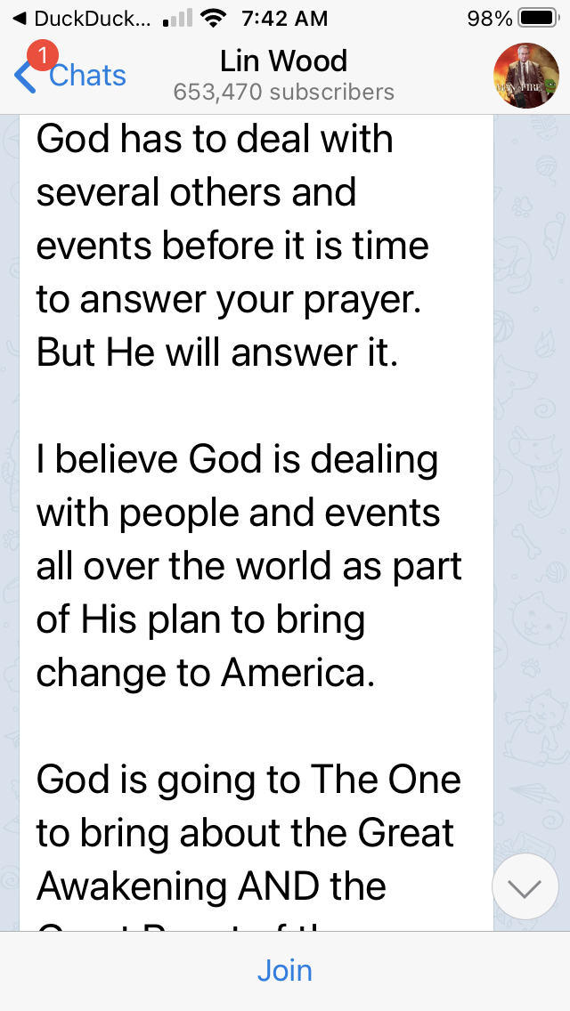 Lin Wood, the attorney from Georgia who began tweeting out some outlandish things including that Jeffrey Epstein is still actually alive, has moved to Gab and Telegram. Gab is a social service like Twitter except without the censorship. Telegram is chat groups.