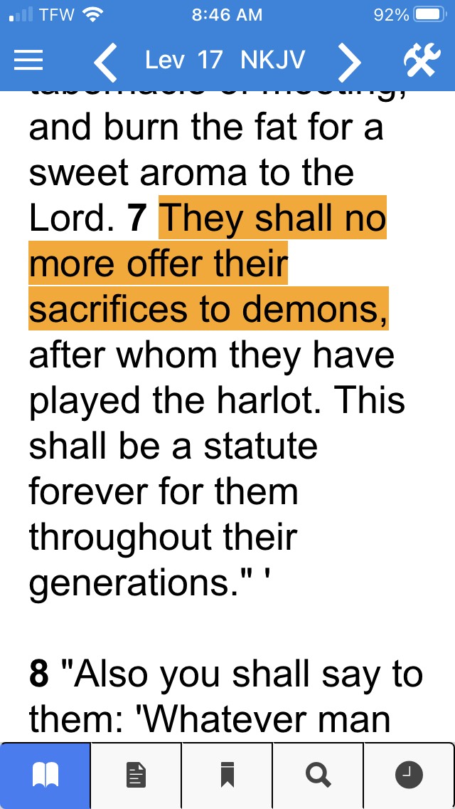 I find it fascinating that the Bible literally says that those who are involved in idolatry and worshiping false idols are actually worshiping demons. In the book of Leviticus, God explains the situation with no uncertain terms.