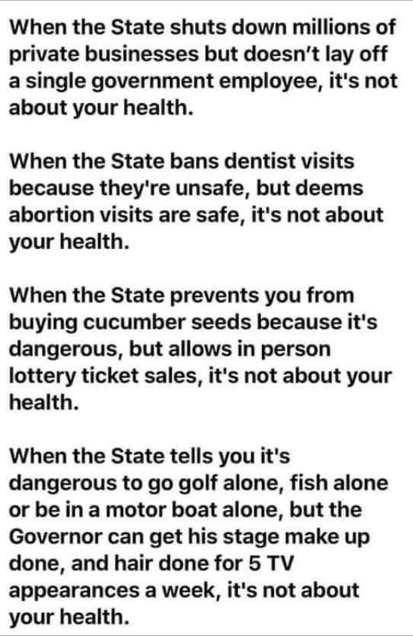 I don’t recall any previous flu season (or pandemic), people being told to wear masks and get the flu shot to keep other people safe, do you? People had the choice to get the flu vax and if they chose it, they did it for purely themselves. They did not want to get sick, so they got the flu vax, thinking they’d be protected. That didn’t always work because many still got the flu. I don’t recall anyone wearing masks during any previous flu season either, do you? It was never mandated by mayors, city councils or governors nor were businesses shut down. If a person wanted to wear a mask, they were free to do so, but it was never a default mandatory practice in society.