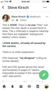 Several of the above links also bear this information out and more fully explain things. People are dying and they are fully vaxxed. However, MSM is trying to tell us that the people who are dying are not fully vaxxed. This is because the CDC has stated that until a person is past the 14th day after their second jab, they are not considered fully vaxxed. So people who go into the hospital after they’ve received the first or second jab are considered not fully vaxxed if it is not beyond the 14th day after second jab. This means that they are counted as “unvaxxed” if they die before the “due” date. It starts all over again with respect to the booster. The MSM is playing the numbers game and the actual truth is not getting out there. It boggles my mind that people continue to believe the CDC and FDA are honest and simply want to help. Any mistakes they might make are chalked up to “human error” rather than deliberate subterfuge.