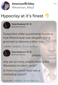 Racism was the claim against Kyle Rittenhouse long before he even went to trial for shooting three white people, killing two of them in self-defense. However, Darrell Brooks (a black man), deliberately ran over a group of white people, even accelerating into them, killing a number of them and injuring many. He is now complaining that he is being demonized for murdering people.