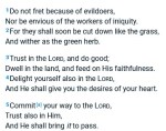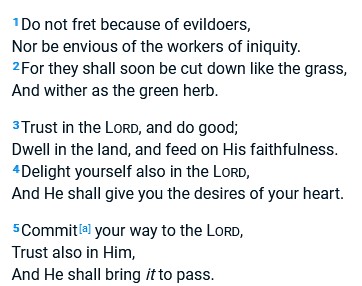 All of what’s happening in the world can tend to take the wind out of our sails and even plant seeds of doubt and depression. We see the corruption, the evil and the collected power that is being used to destroy people’s lives and nothing is done about it. Of course, God’s response is found in Psalm 37:1-5 among many other places in Scripture.